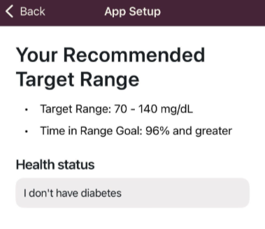 Then, set up your Target Range, the Stelo app has some suggested ranges, or you can choose your own: