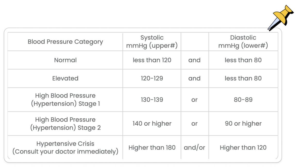 Here’s how the American Heart Association (AHA) classifies blood pressure: